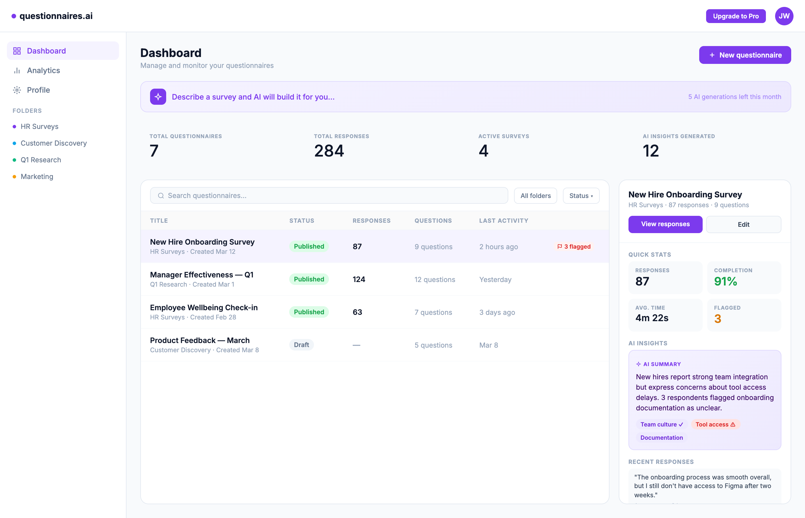 AI reads every response and surfaces what matters — urgency flags, key themes, and actions you can take today.